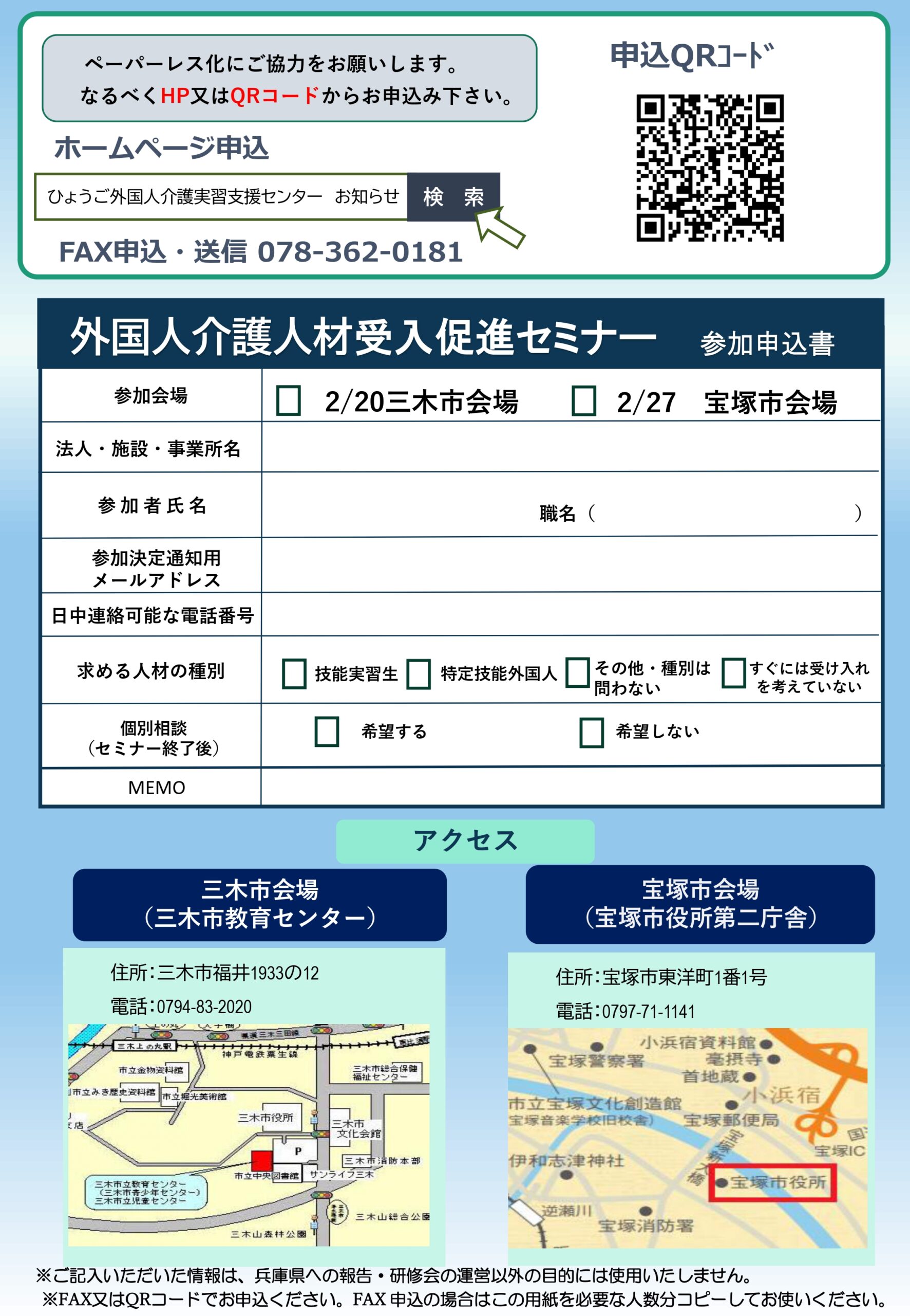 2月20日(三木市会場)・2月27日(宝塚市会場)外国人介護人材受入促進セミナー