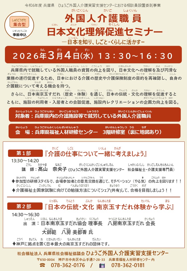 3月4日(水)外国人介護職員 日本文化理解促進セミナー【集合型開催】