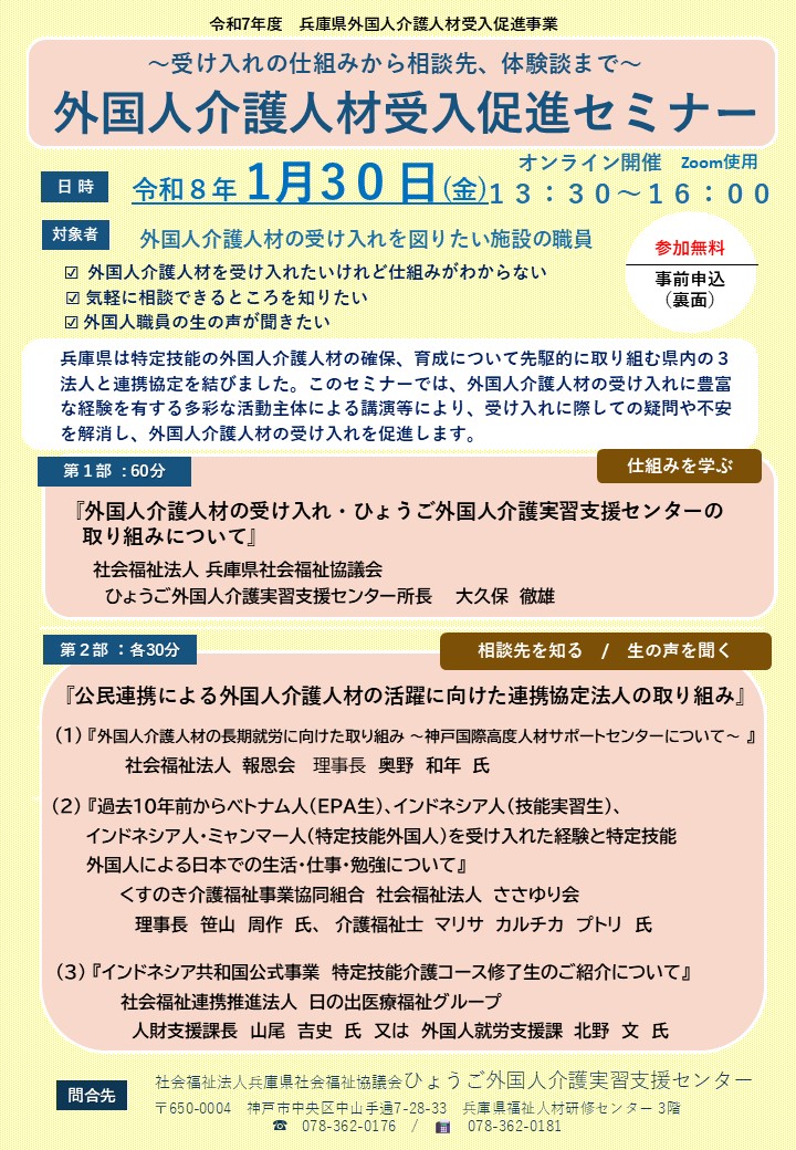 外国人介護人材受入促進セミナー【2026年1月30日(金)13:30~16:00】オンライン開催